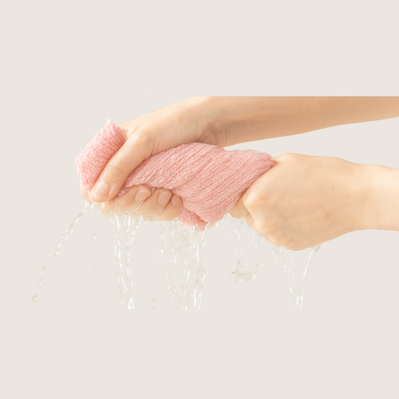 • Țesătură unică în două straturi: firele subțiri, dens țesute, creează o spumă bogată, în timp ce fibrele texturate îndepărtează delicat celulele moarte, lăsând pielea netedă și luminoasă.